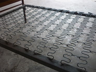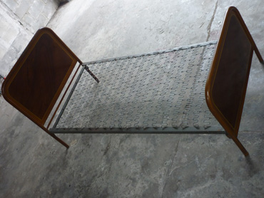 Snel monteerbaar metalen bed uit de 60'r jaren,heeft gediend in internaten,instellingen of (wees)kinderopvang.